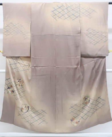> 《古美術京松》【着物】 アンティーク 訪問着 刺繍 一つ紋 花丸文 花菱 銀糸 金糸 身丈約149.5cm 裄丈約60.5cm kyo7z05-374
