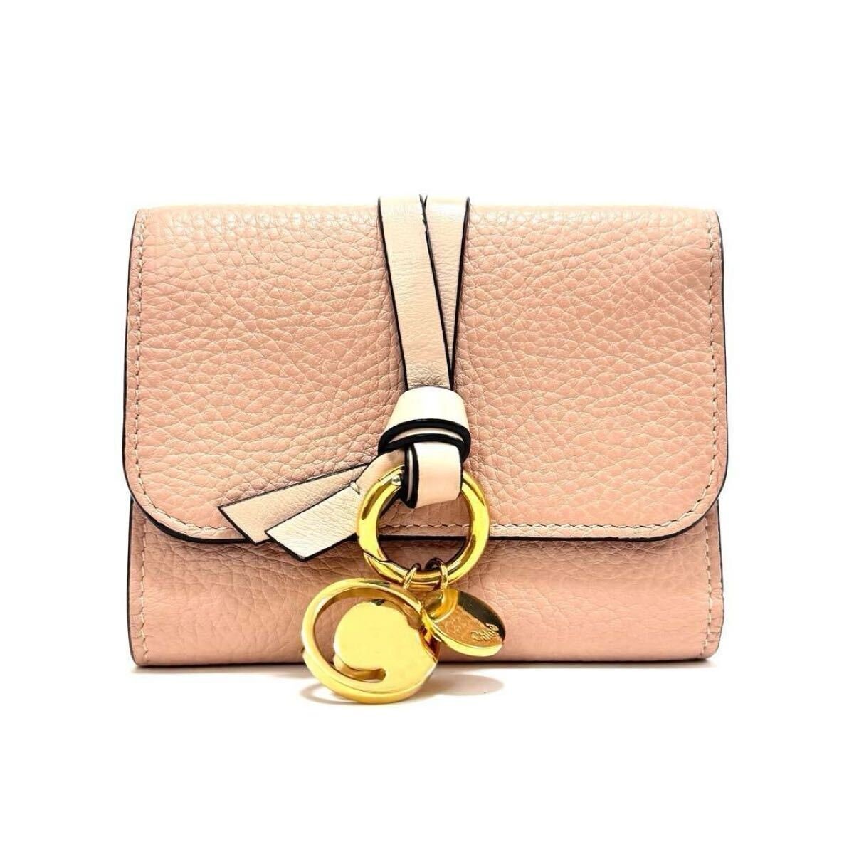 - クロエ アルファベット トリフォールド 三つ折り財布 コンパクトウォレット ミニ財布 小銭入 ピンク ゴールド レザー 本革 チャーム Chloe