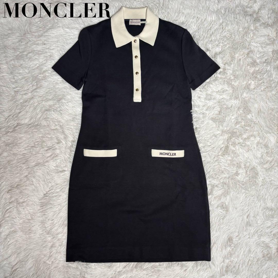 - 極美品 MONCLER ABITO モンクレール 23年 ワンピース コットン ポロシャツ ミニ丈 黒 ブラック XSサイズ 408