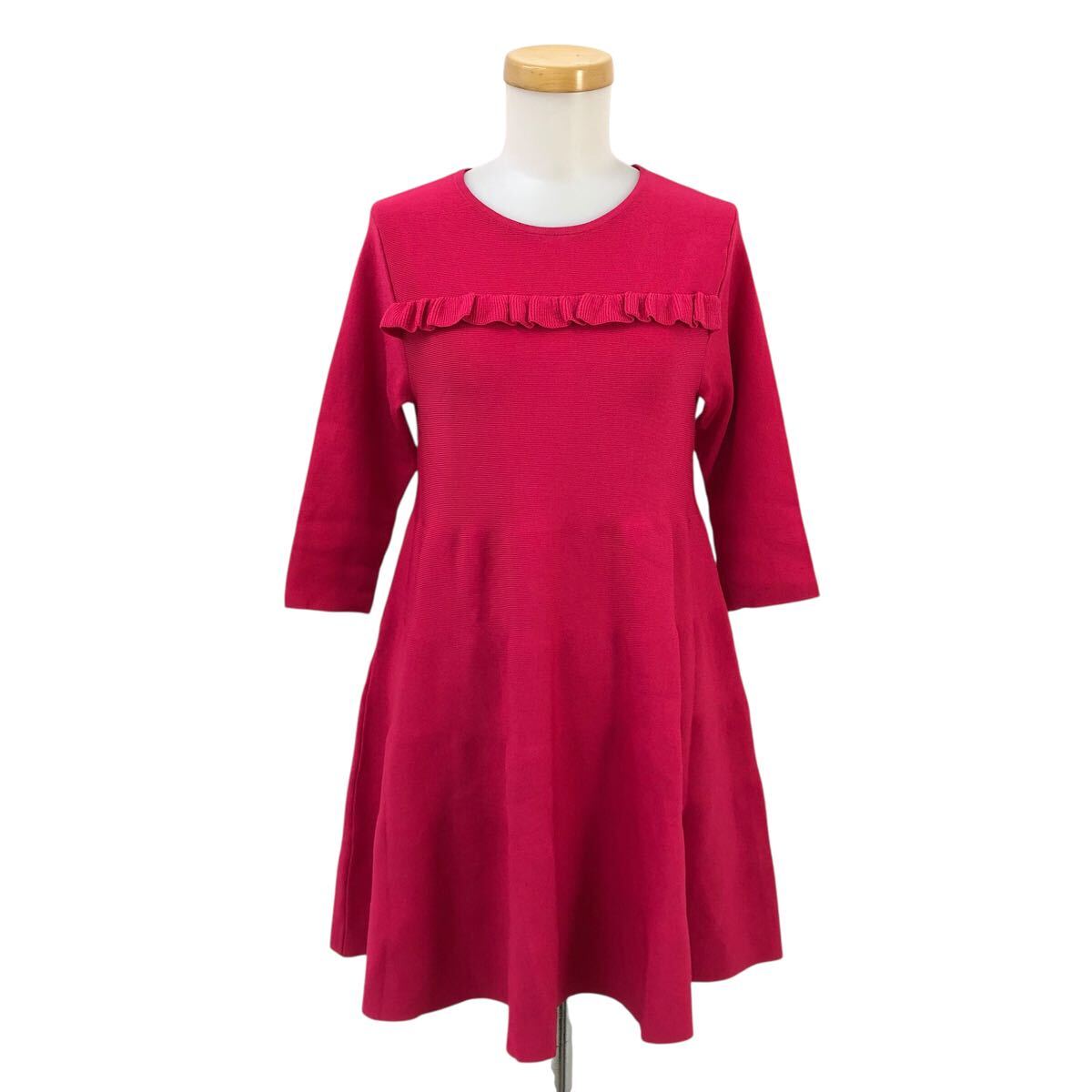 - 10Nm331-23 TO BE CHIC トゥービーシック 七分袖 フリル チュニック ニット セーター フレア トップス ピンク レディース Ⅱ