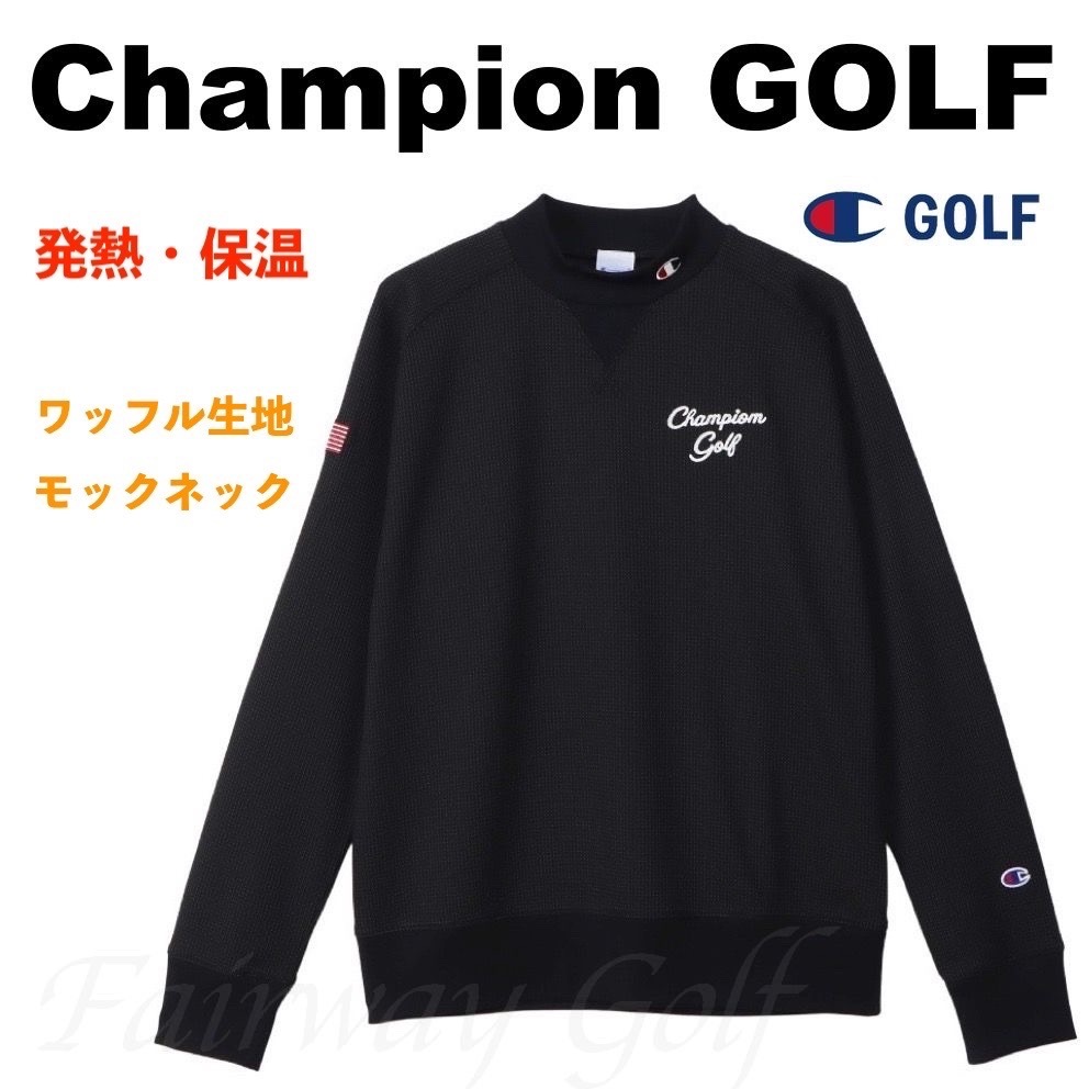 > ■【S】定価9,790円 チャンピオン ゴルフ Champion GOLF 保温 発熱 ワッフル生地 モックネックシャツ 黒■