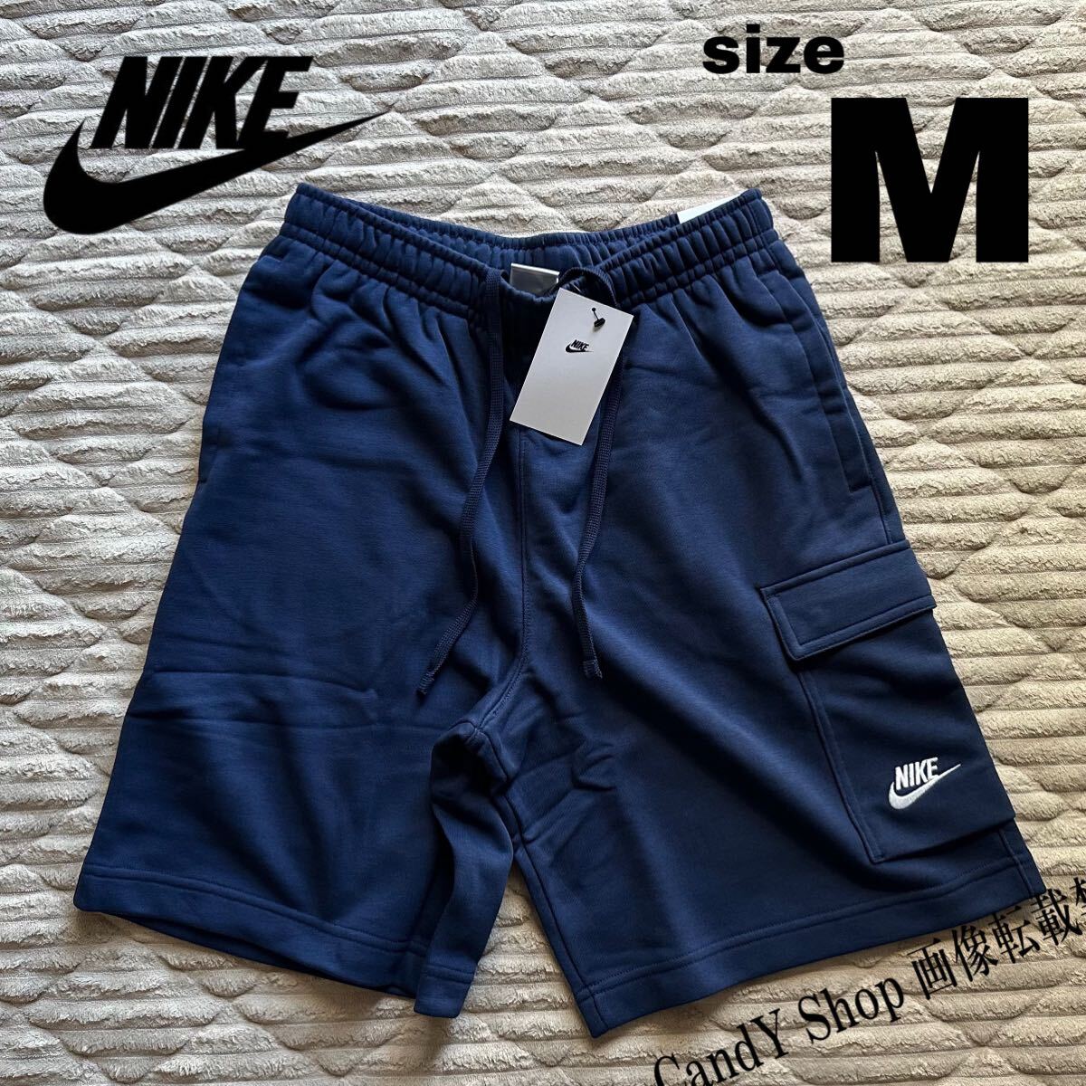 - 送料無料 Mサイズ 新品 NIKE ナイキ ハーフパンツ スウェット ネイビー 紺色 フリース ショートパンツ カーゴパンツ 刺繍 DD7015-410