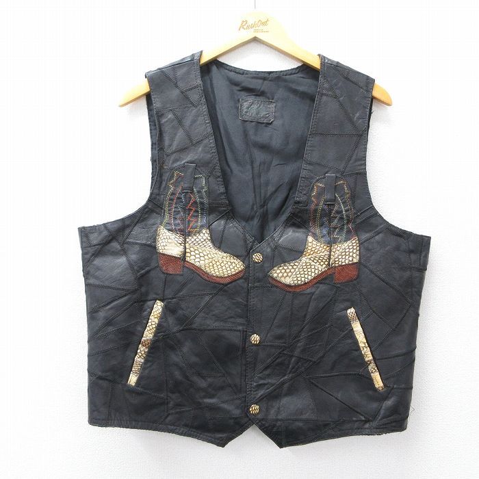 - L/古着 レザー ベスト メンズ 80s ウエスタンブーツ 黒他 ブラック 25oct06 中古 アウター