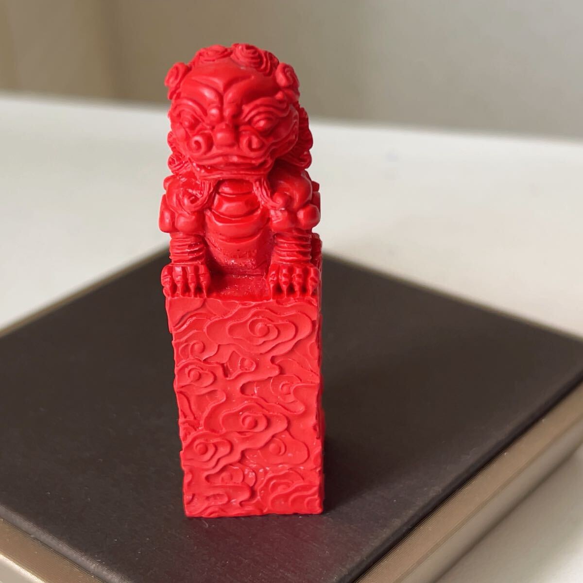 - ◇シナバー(辰砂)◇印材素材◇ライオン形◇印鑑◇ハンコ 判子◇彫刻用◇プレゼントにも 024A101101