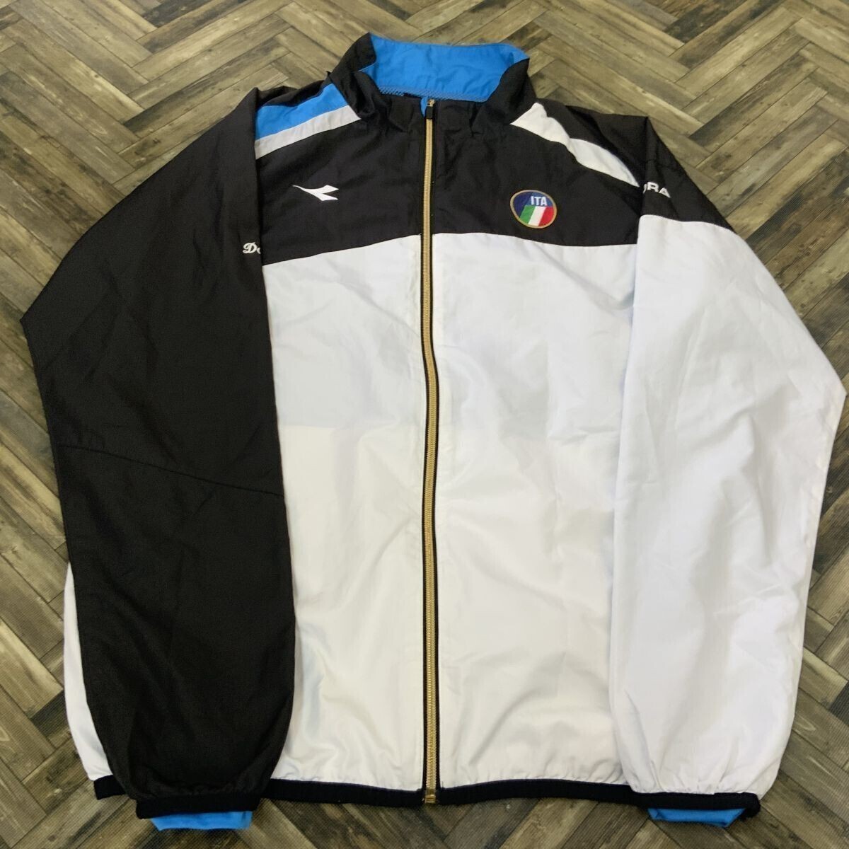 - HY157 実物 DIADORA ディアドラ ウィンドブレーカー スポーツウェア 上着 ジャケット ブラック ホワイト ブルー メンズO