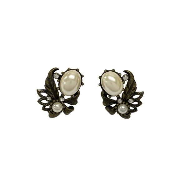 > ヴァンドームブティック VENDOME BOUTIQUE ピアス - 金属素材×フェイクパール×ラインストーン 美品 アクセサリー(耳)