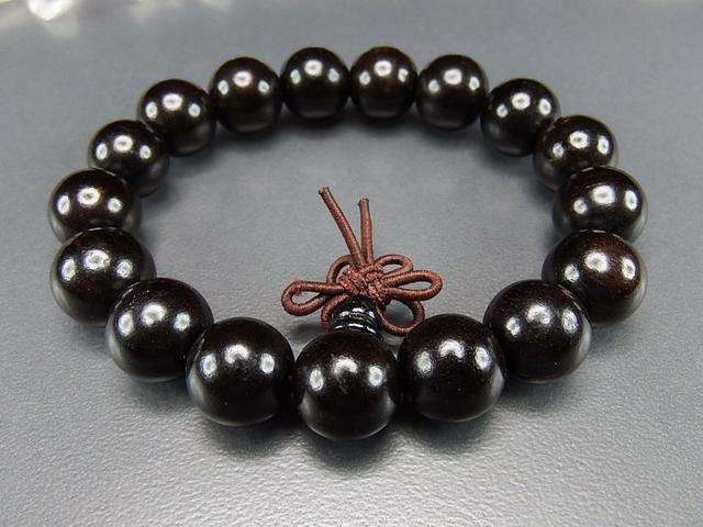 - オーダー作成黒檀木ブラック檀木約12mm強結び無し177mm数珠ブレスレットプライム