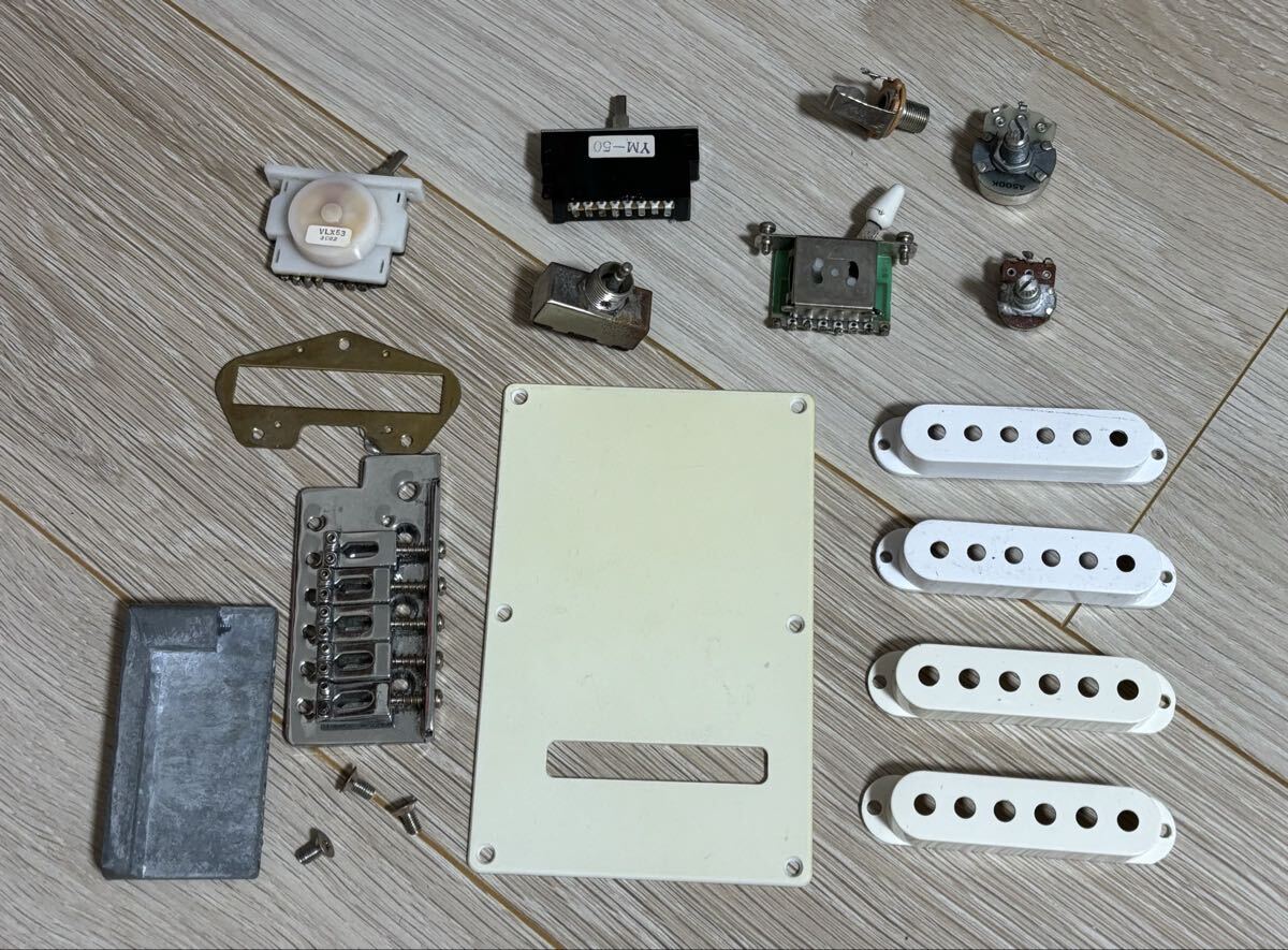 > ギター ジャンク部品 トレモロブリッジ ピックアップカバー セレクター トレモロブロック コンデンサー ポット ストラト テレキャス