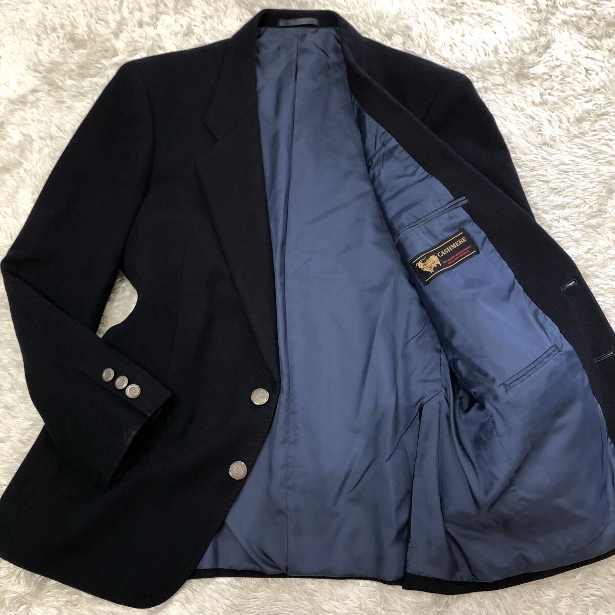 > CASHMERE【極上のカシミヤ】テーラードジャケット ネイビー 紺ブレザー 2B 銀ボタン 背抜き 艶感 高級感 秋冬◎ AB5(M相当)