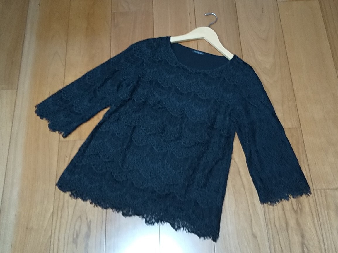 - アールユージーンズ ru jeans 美品 ニット 7分袖 レース使い 2枚重ね 黒 Mサイズ トップス 手洗可