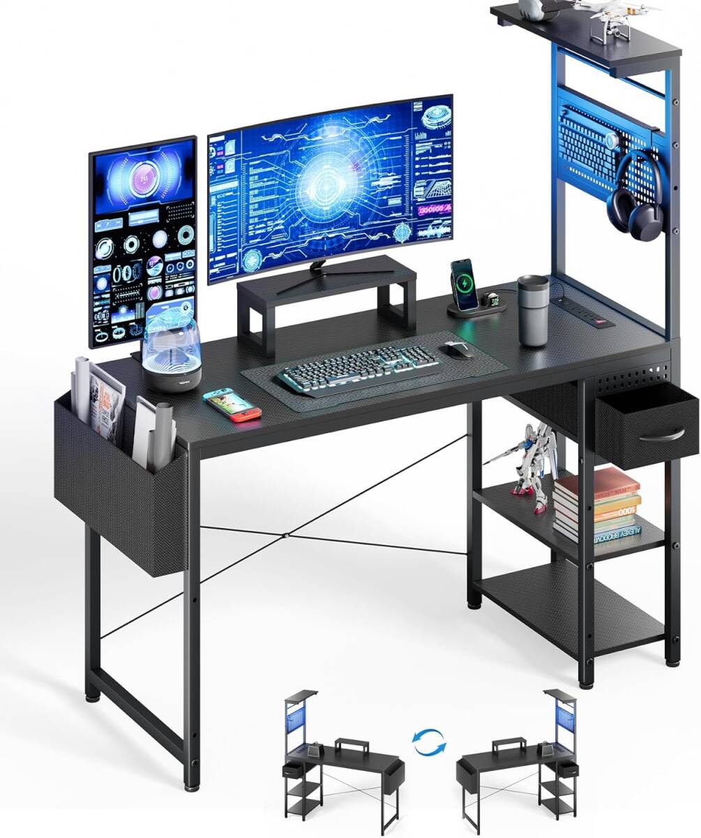 > ブラック色 幅120cm DOMICON ゲーミングデスク 引き出し パソコンデスク ゲームデスク PC desk 作業机 ワークデスク オフィス