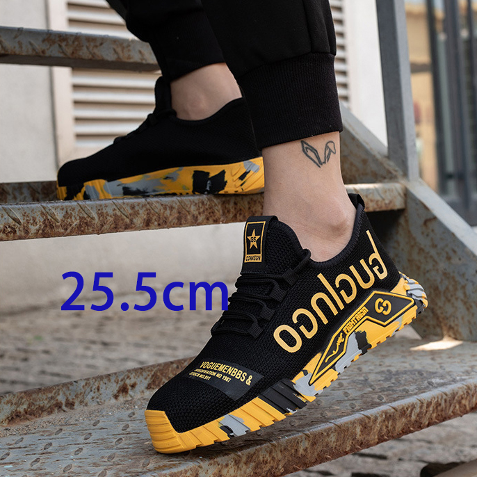 - ワークブーツ 安全靴 ハイカット 作業靴 メンズ 防寒 ワークシューズ スニーカー 耐摩耗 滑り止め軽量 釘踏み抜き防止 イエロー 25.5cm