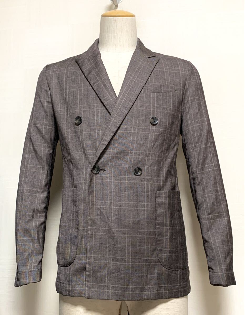 - 新品同様:417 EDIFICE.ダブルブレスト セットアップ スーツ S(チェック柄/ウォッシャブル/肩41幅48/W70-80股下70/ships beams)