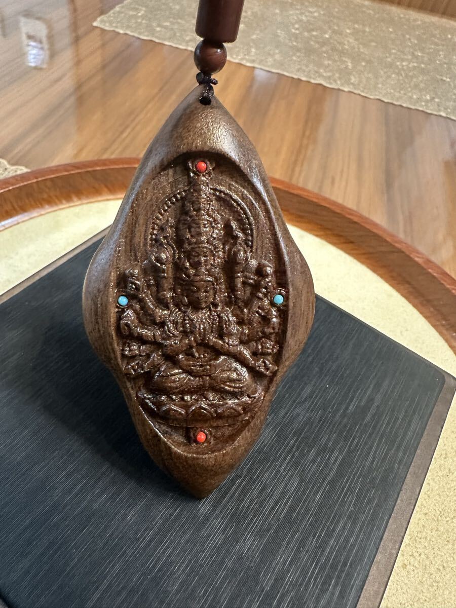- S-174 天然 ダラガン虫漏 沈香 千手観音彫り ネックレス ペンダント