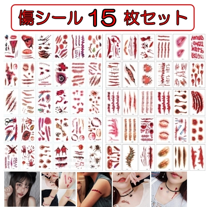- ハロウィン タトゥーシール ゾンビ 傷タトゥー15枚セット イベント パーティ1
