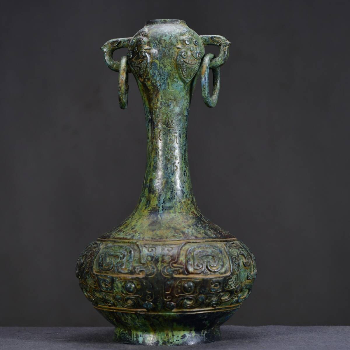- 『館蔵珍品 春秋 青銅製 銘文 蒜頭瓶 青銅器 置物 賞物』稀少珍蔵品 古賞物 貴重物品 収蔵品 中国古美術 時代物 古董品