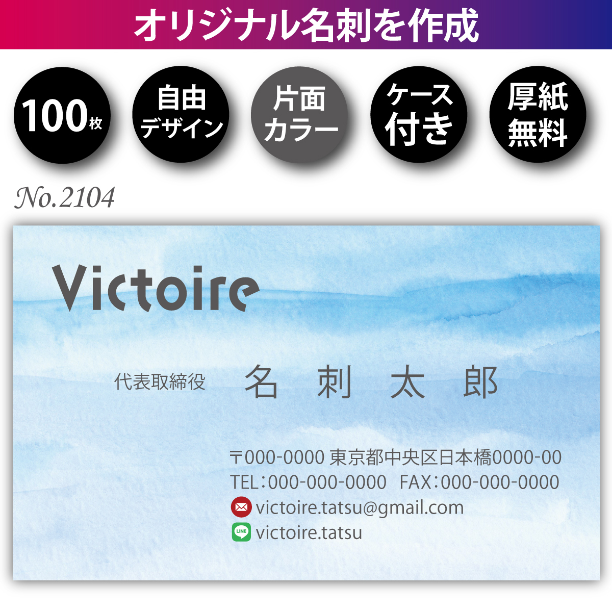 - 名刺 名刺作成 名刺印刷 100枚 片面 フルカラー 紙ケース付 No.2204