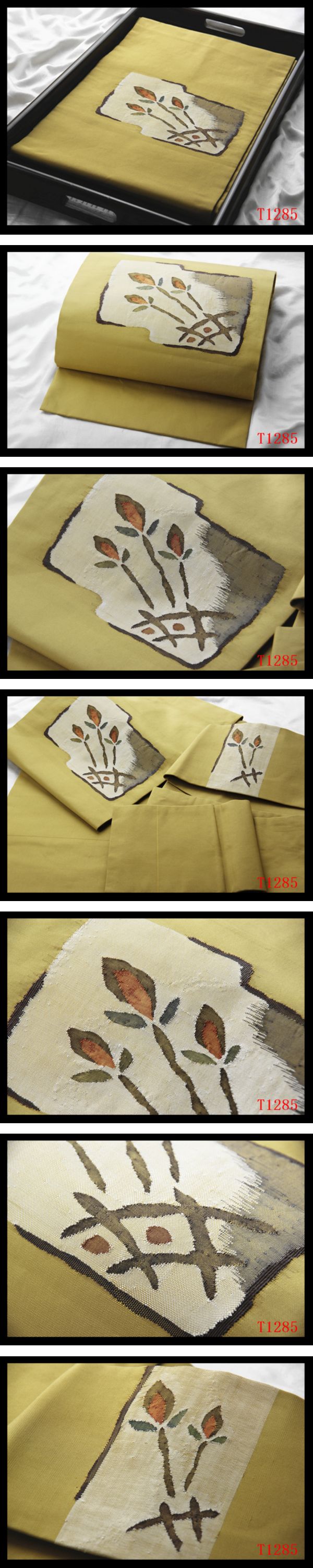 > 蔵【T1285】厳選逸品 青朽葉色地 気品豊かに 正絹高級美術名古屋帯 ◇検簪着物袋帯和装小物帯締め