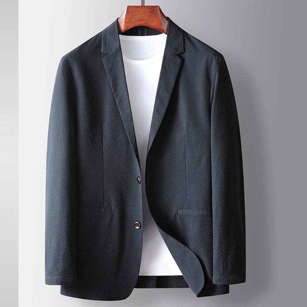 - 薄手 テーラードジャケット サマージャケット メンズ ブレザー ビジネススーツ 長袖 フォーマル 紳士服 春夏 皺生地 ネイビー L/175