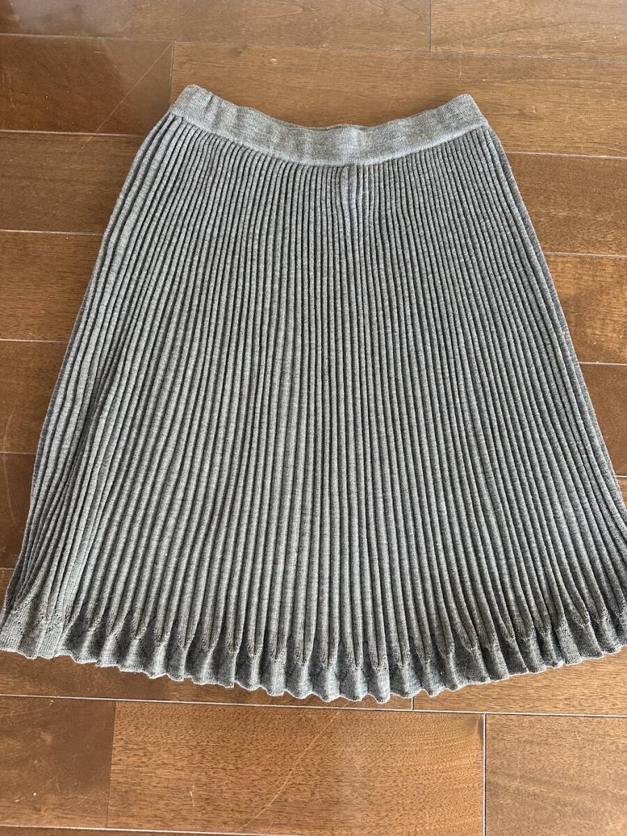 - ヴァレンチノ valentino ニットプリーツスカート 裾フリルが可愛い 膝丈 グレー 軽ふわウール