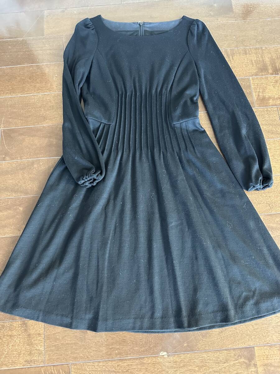 - ブラック ウール ワンピース 大人可愛い 凝った作り 膝丈