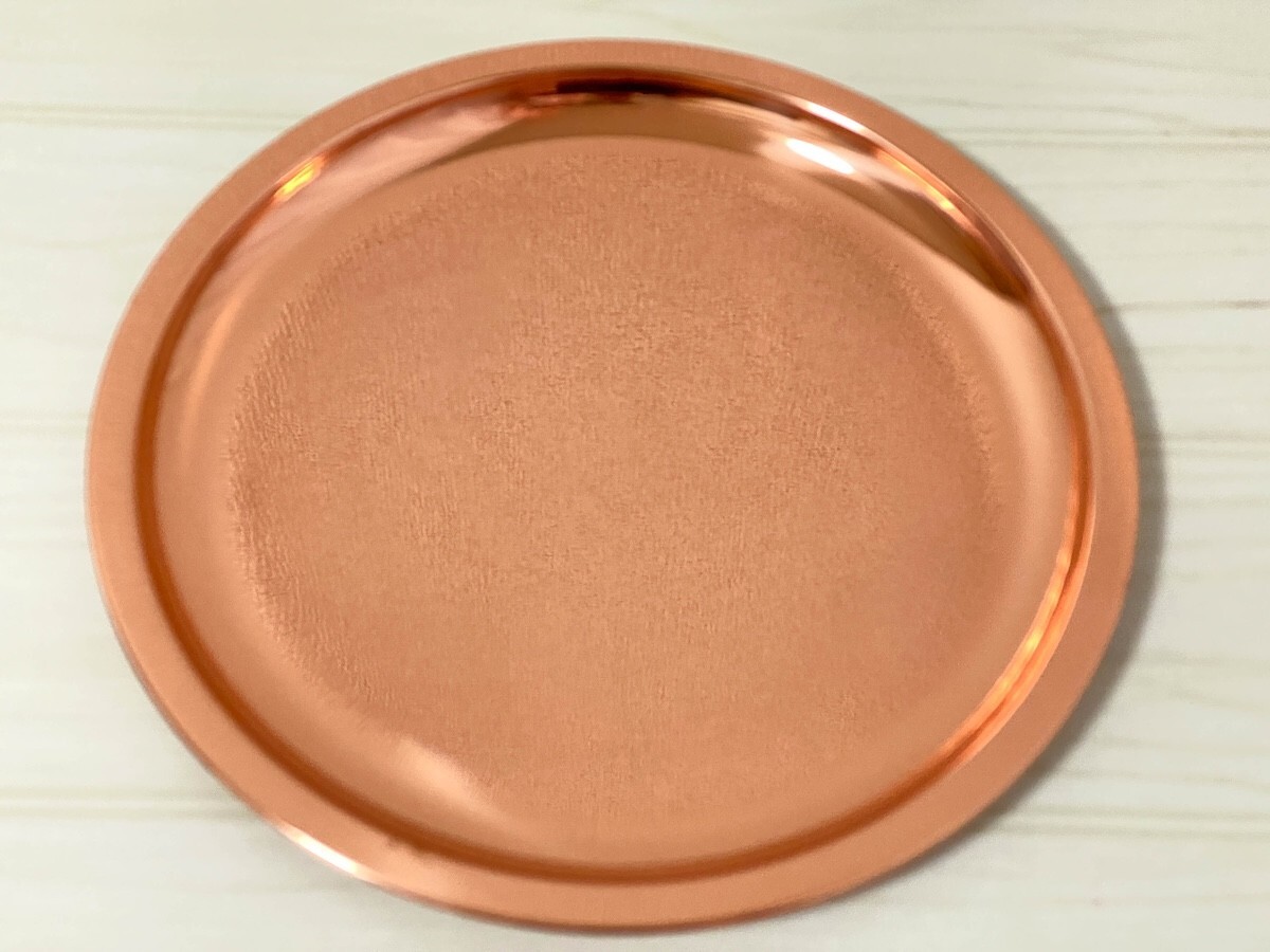 - 【TK185】純銅製 丸盆 直径約29cm 高さ約2cm 重さ374g お盆 トレー 金属工芸 和食器 骨董 インテリア