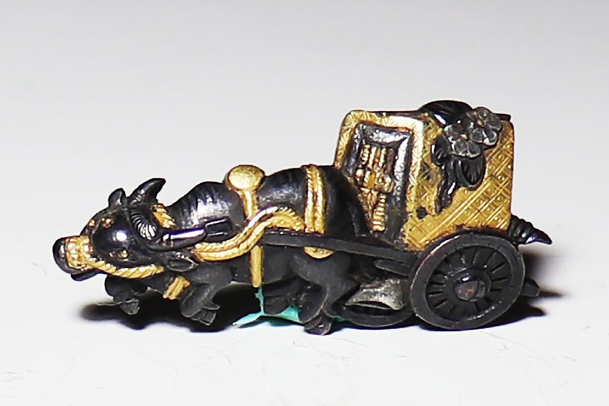 - 【桃】刀装具:金工銅地金銀象嵌御所車片目貫