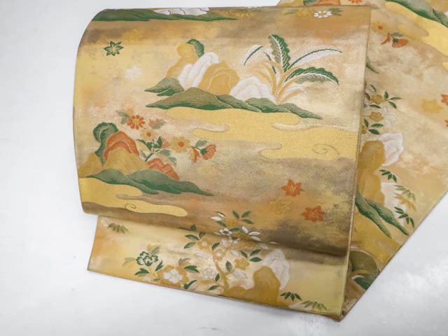 > 《京都一輝堂》リサイクル着物 袋帯 六通柄 花文 正絹 25b07-1154