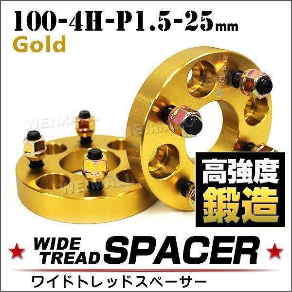 - Durax ワイドトレッドスペーサー 100-4H-P1.5-25mm ナット付 金 8C 4穴 ワイトレ トヨタ 三菱 ホンダ マツダ ダイハツ 2枚セット ホイール