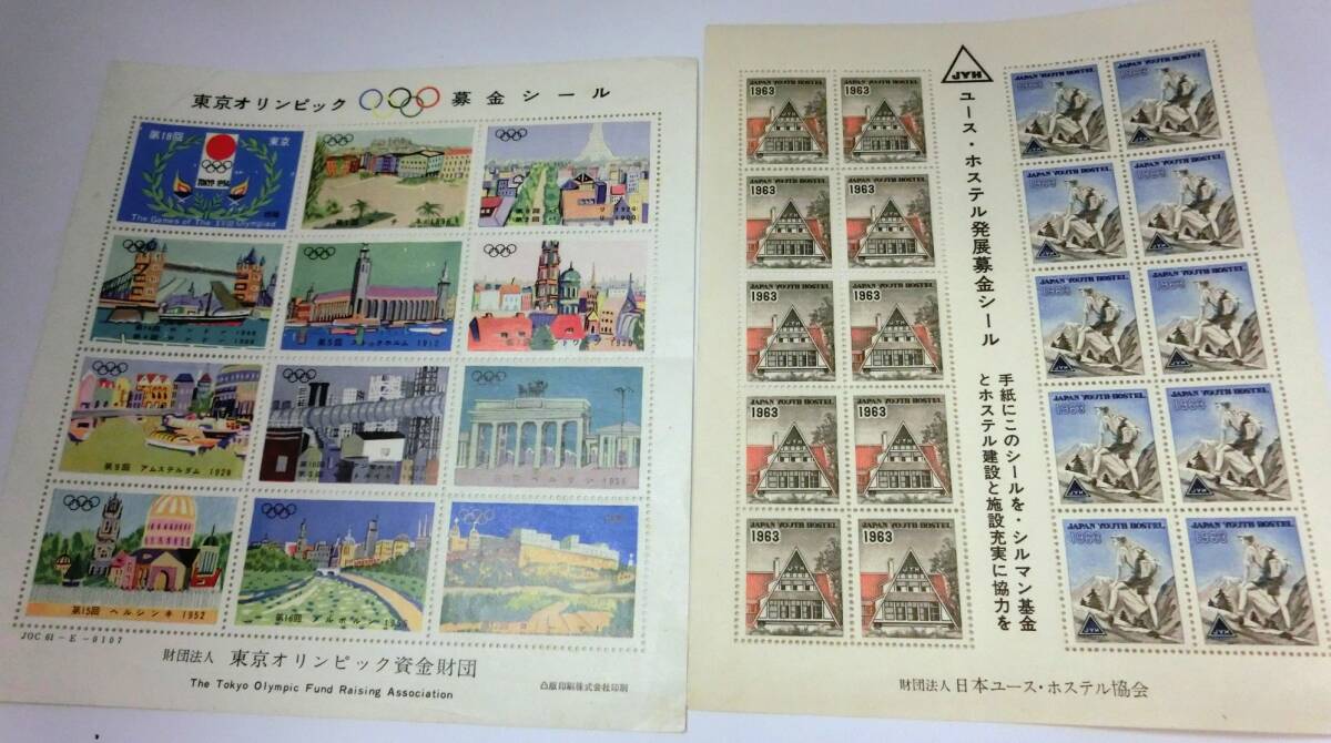 - ♥♥80776 当時物 東京オリンピック ユースホステル発展 募金シール 2枚セットまとめ コレクション♥♥