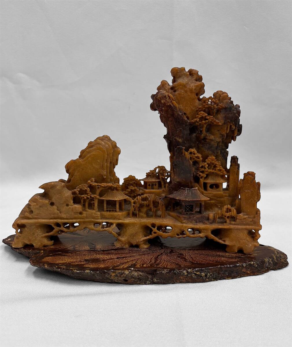 > 1円 唐物 中国石 彫刻 飾り石 鑑賞石 鉱物 唐木台 台座 置物 中国美術 インテリア アンティーク 重さ0.9kg H17cm W26.5cm【TU01886】