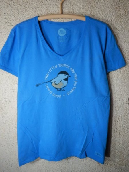 > to8164 Life is Good ライフ イズ グッド 大きめ ビッグ 半袖 Vネック 小鳥 デザイン tシャツ 人気 US古着 送料格安