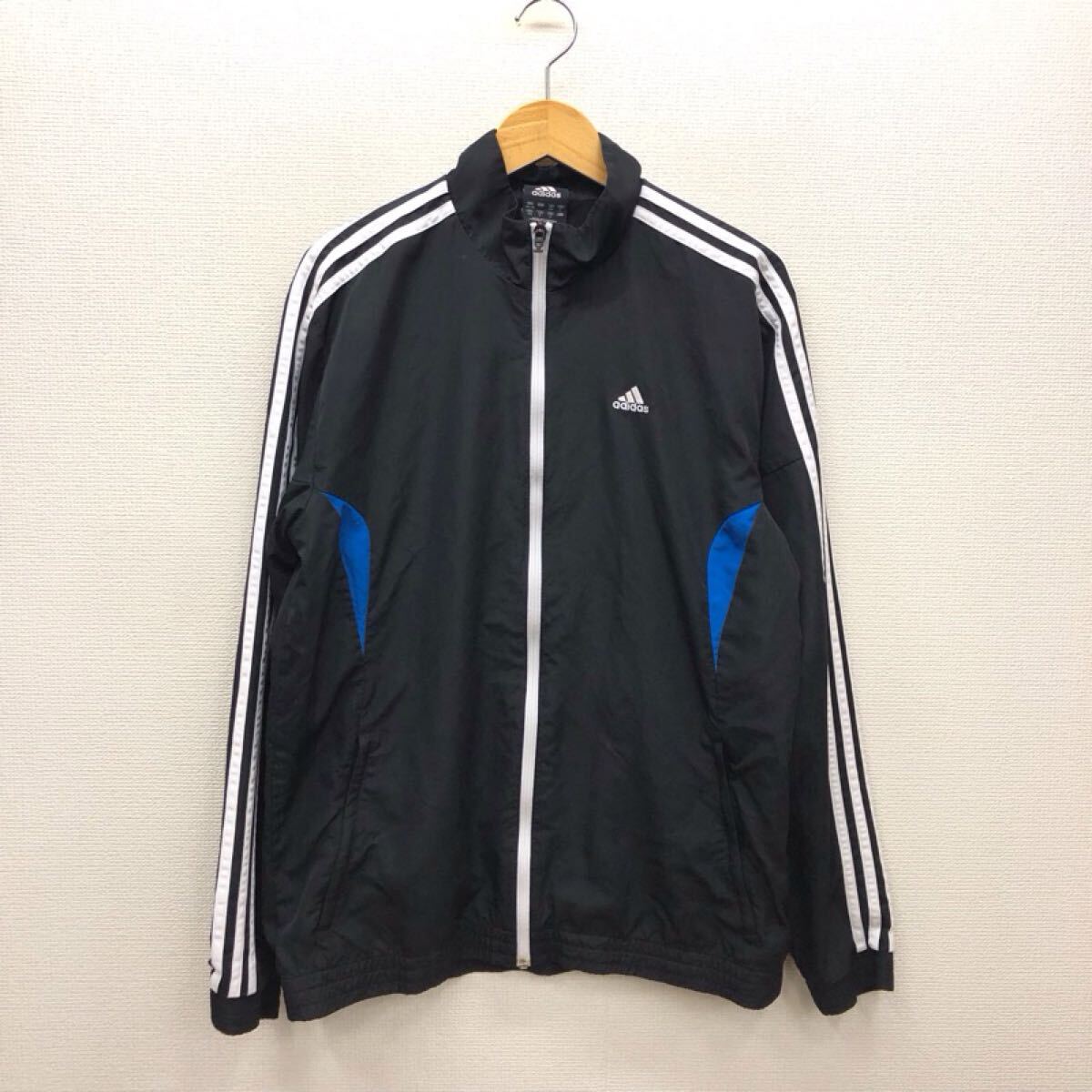 > 【GJ066】adidas Lサイズ ウィンドブレーカー ブラック 三本ライン 裏地メッシュ ブランド古着 アディダス スポーツウェア 送料無料