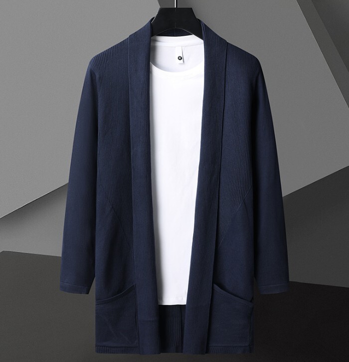 - メンズ カーディガン 秋冬 ニットジャケット ロング丈 ニットセーター アウター ロングコート ショールカーディガン ネイビー M~4XL Z1313