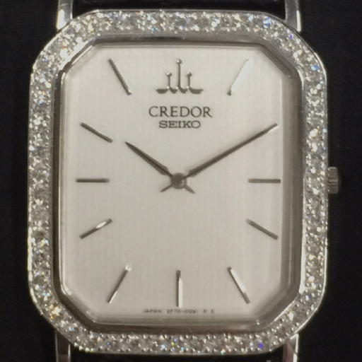 - セイコー クレドール ダイヤモンドベゼル 裏蓋 18KT クォーツ 腕時計 2F70-5062 メンズ 18KT尾錠 稼働品 CREDOR