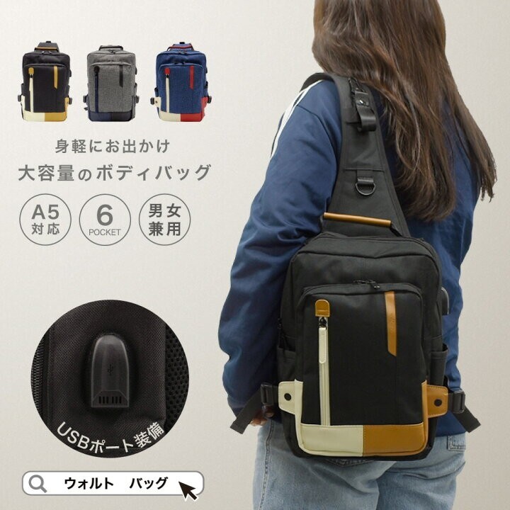 > ボディバッグ メンズ ブランド 肩掛け 大容量 ショルダーバッグ 大きめ ワンショルダーバッグ USBポート 軽い ナイロン 2way 497086e