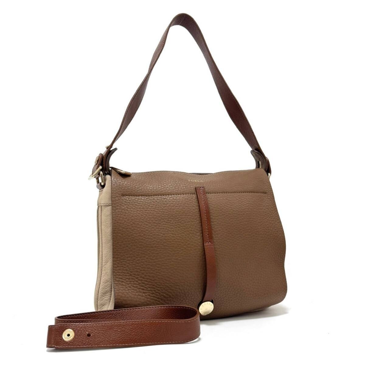- フルラ 2way ハンドバッグ ショルダーバッグ 肩掛け 鞄 斜め掛け ベージュ ブラウン 茶 ゴールド レザー 本革 エキスパンダブル FURLA