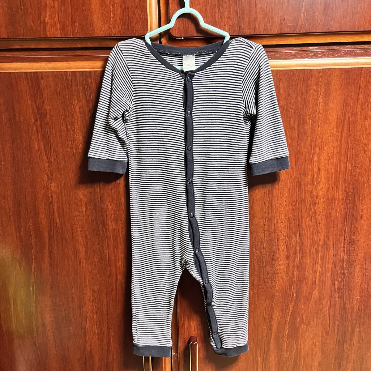 - H&M 紺×白 ボーダー柄長袖ロンパース 80サイズ コットン100%