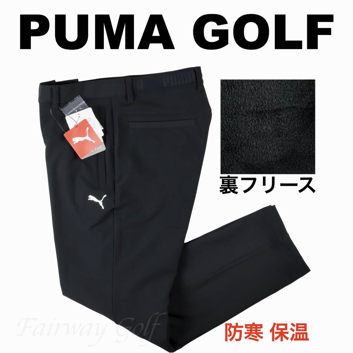 > ■【XL】秋冬 定価18,700円 プーマ GOLF 保温 裏フリース ボンディング テーパードパンツ黒■