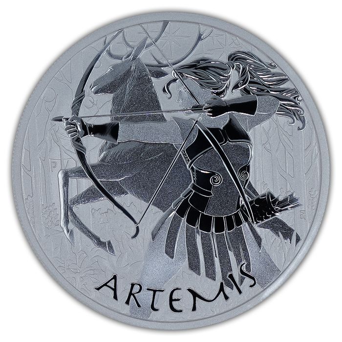 - [保証書・カプセル付き] 2023年 (新品) ツバル「オリンポスの神々・アルテミス 月、狩りの女神」純銀 1オンス 銀貨