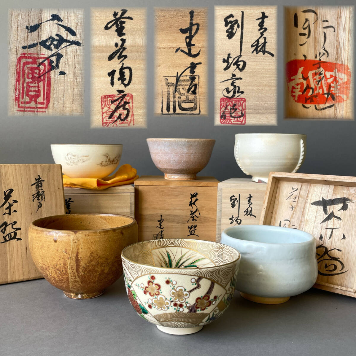 - MS3475 在銘 茶碗 6点 まとめて 西川實 黄瀬戸 厚東健信 萩 劉炳豪 粉引 野沢勉 益子 など 美品 (検)九谷 茶器 茶道具 共箱 木箱