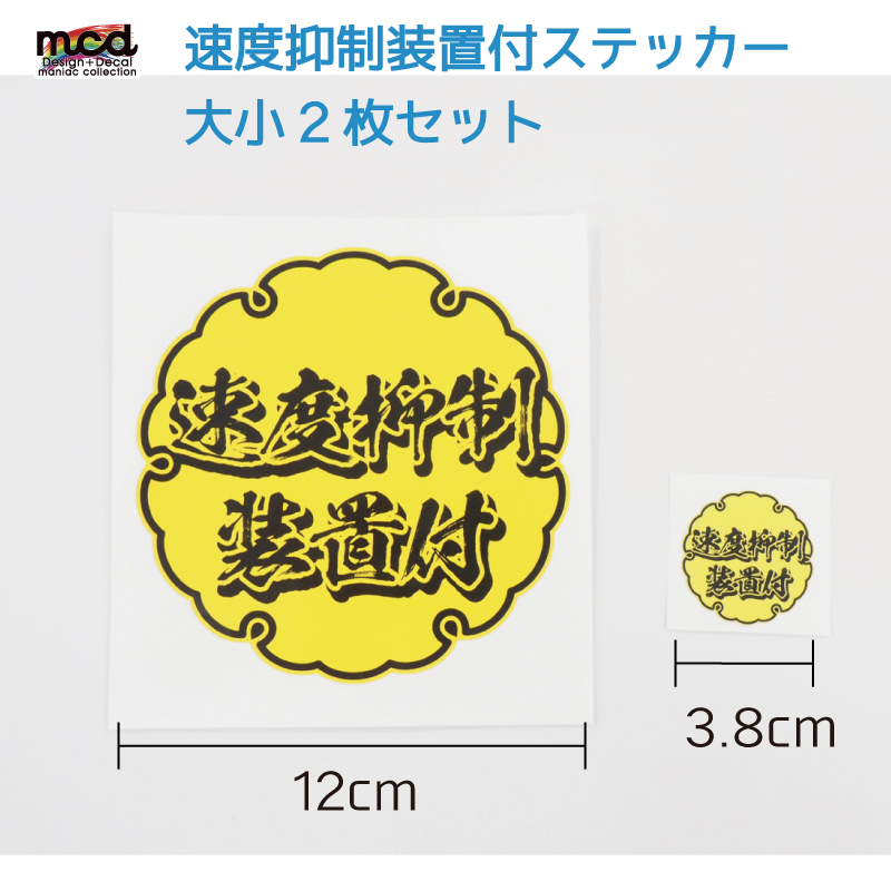 - トラックに「速度抑制装置付」ステッカー (大小2枚セット) 12cm 3.8cm 和柄 ((黄色)) デコトラ