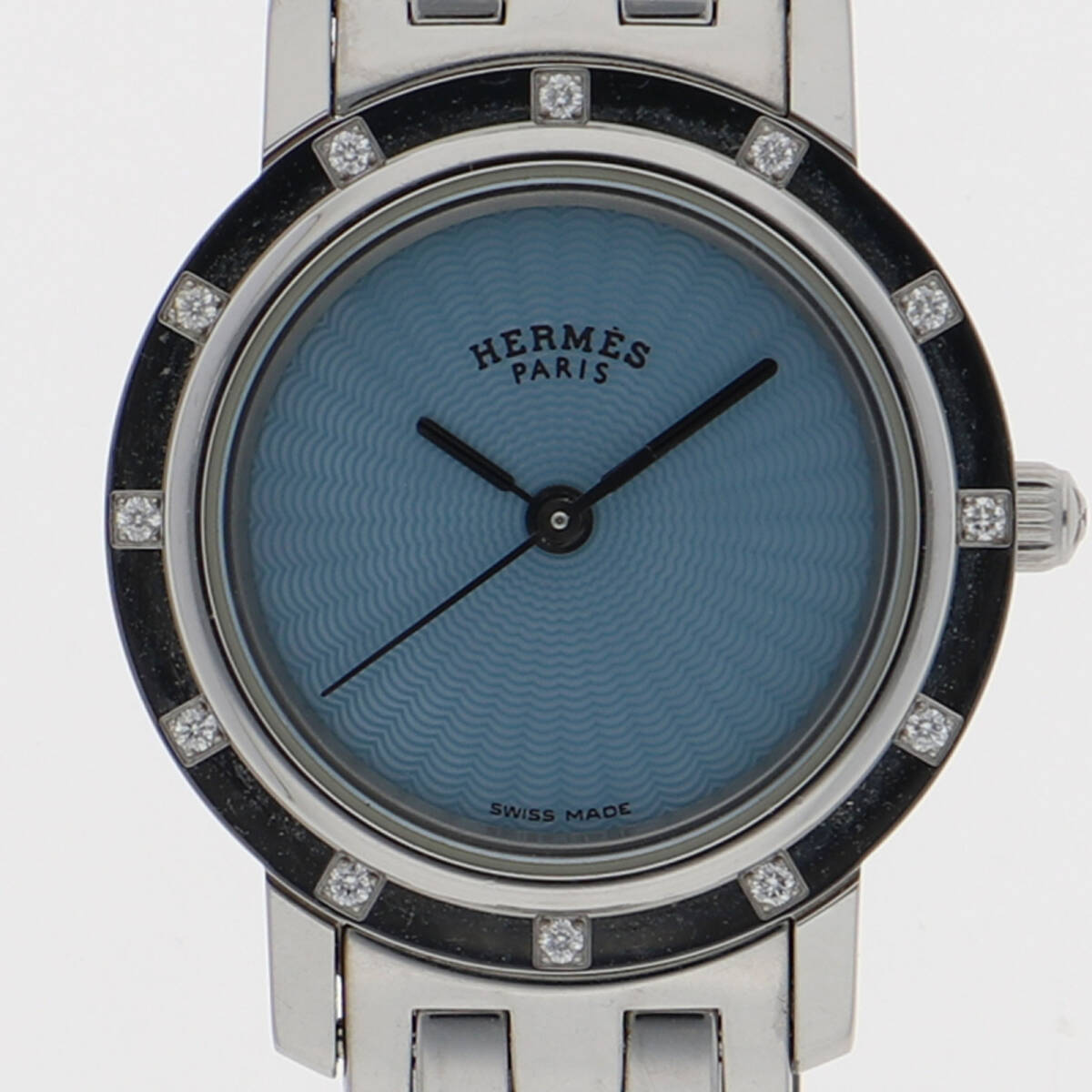 > HERMES エルメス CL4.230 クリッパー ブルーシェルダイヤル SS クオーツ レディース【136511】