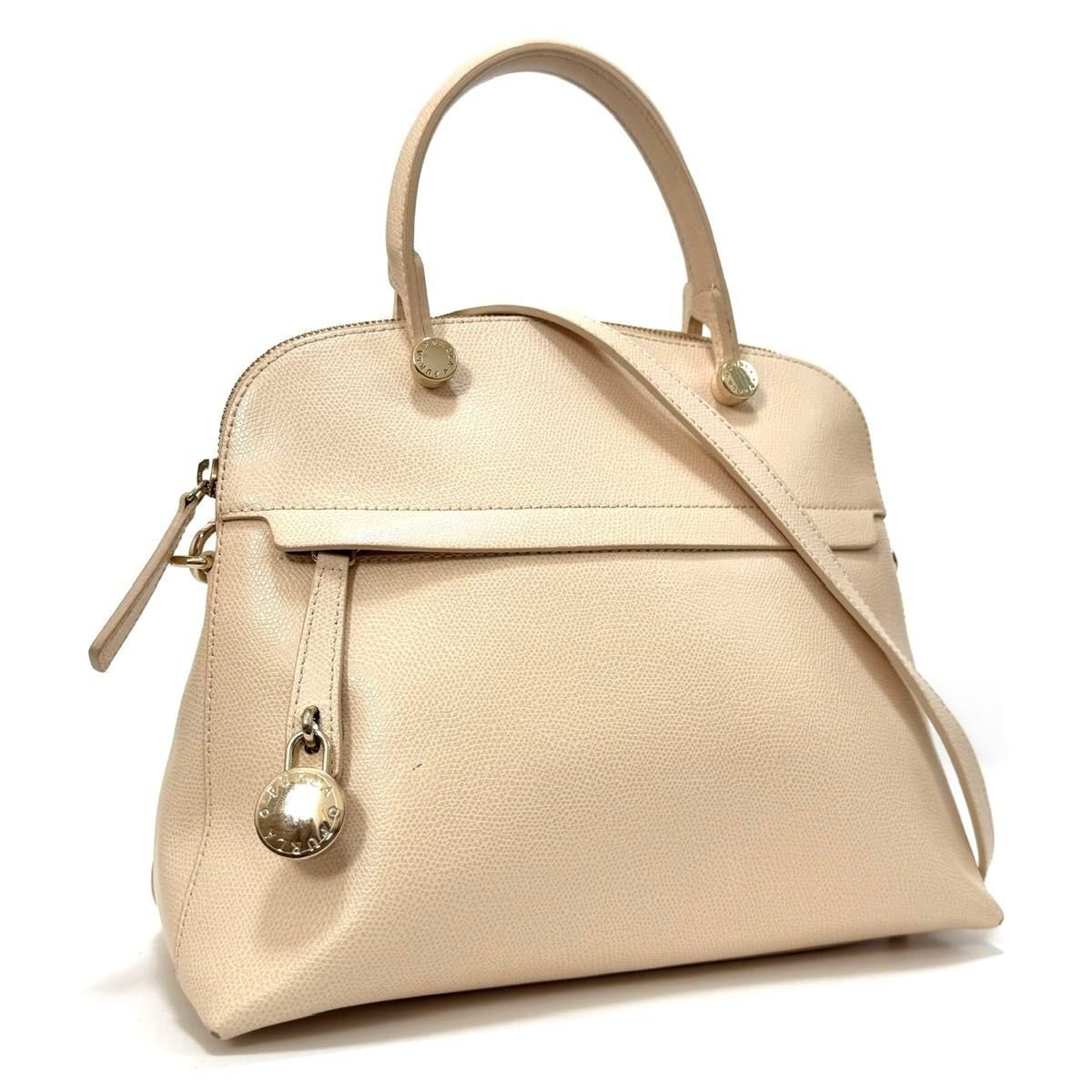 - フルラ パイパー ハンドバッグ トートバッグ ショルダーバッグ 2way 斜め掛 鞄 クリーム アイボリー ホワイト ゴールド レザー 本革 FURLA