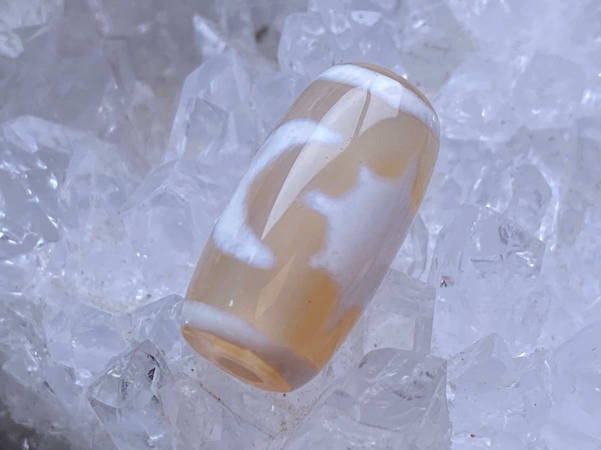 - 即決 0621a242 新入荷★【チベット老玉髄日月星天珠】★ 20x10mm(新品)