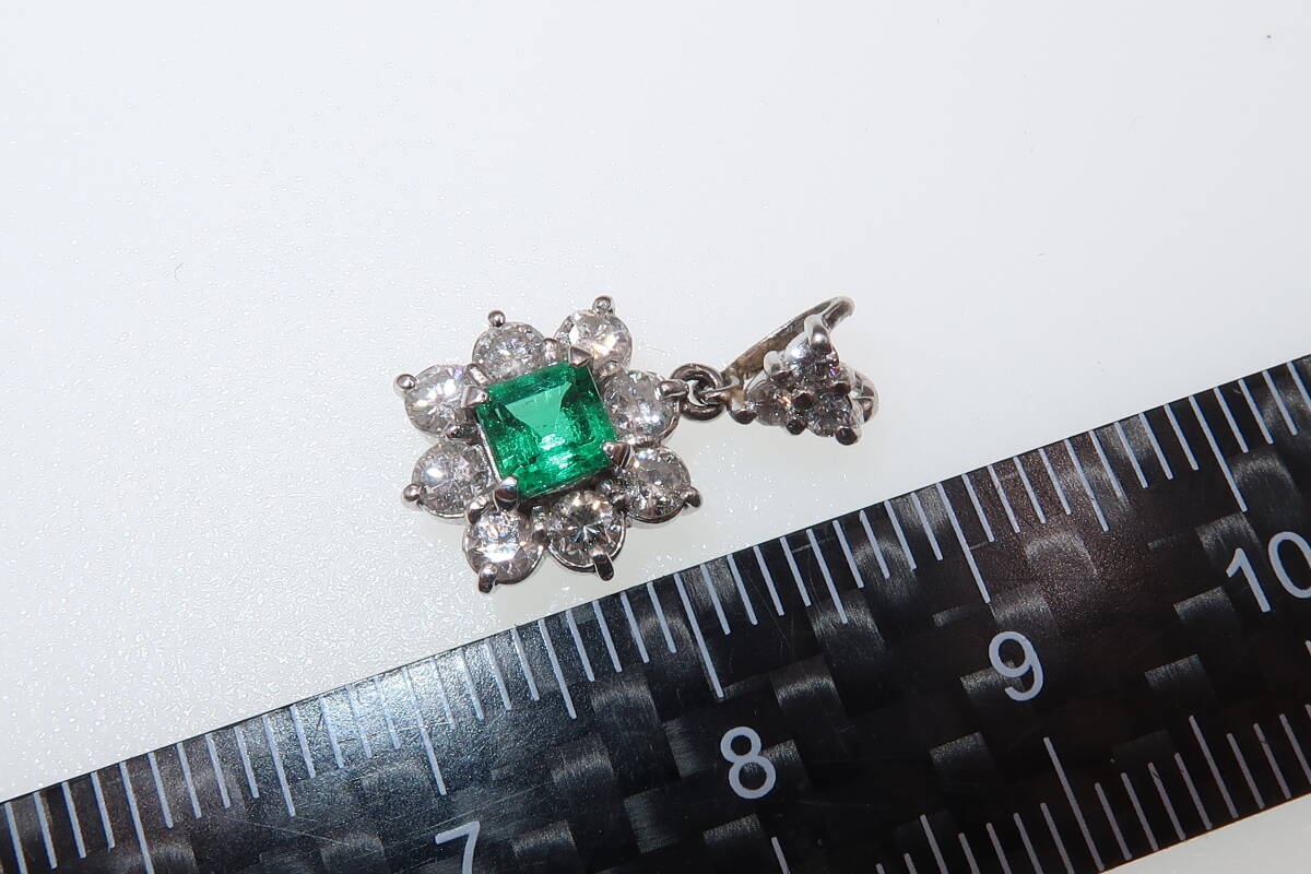 - Pt900 エメラルド 0.34ct ダイヤモンド 0.56ct ペンダントトップ