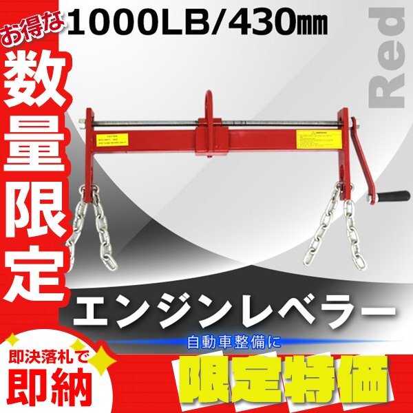 > 【限定セール】エンジンハンガー 耐荷重 1000LBS 453kg エンジンクレーン 吊り上げ 脱着 重心位置 変更 レベラー バランサー 工具 赤