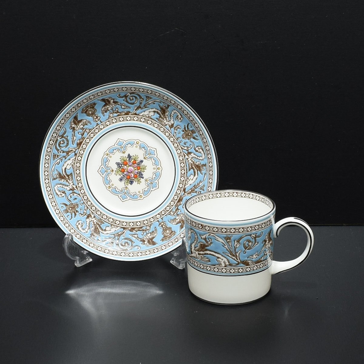 - ◎560374 美品 WEDGWOOD ウェッジウッド フロレンティーンターコイズ 黒壺 デミタス カップ&ソーサー 1客