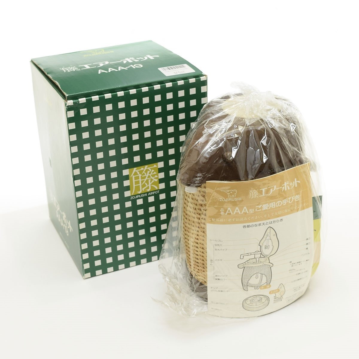 > ◎521324 未使用品 ZOUJIRUSHI 象印 籐エアーポット 魔法瓶 籐ポット AAA-19 ラタンポット 昭和レトロ 箱入