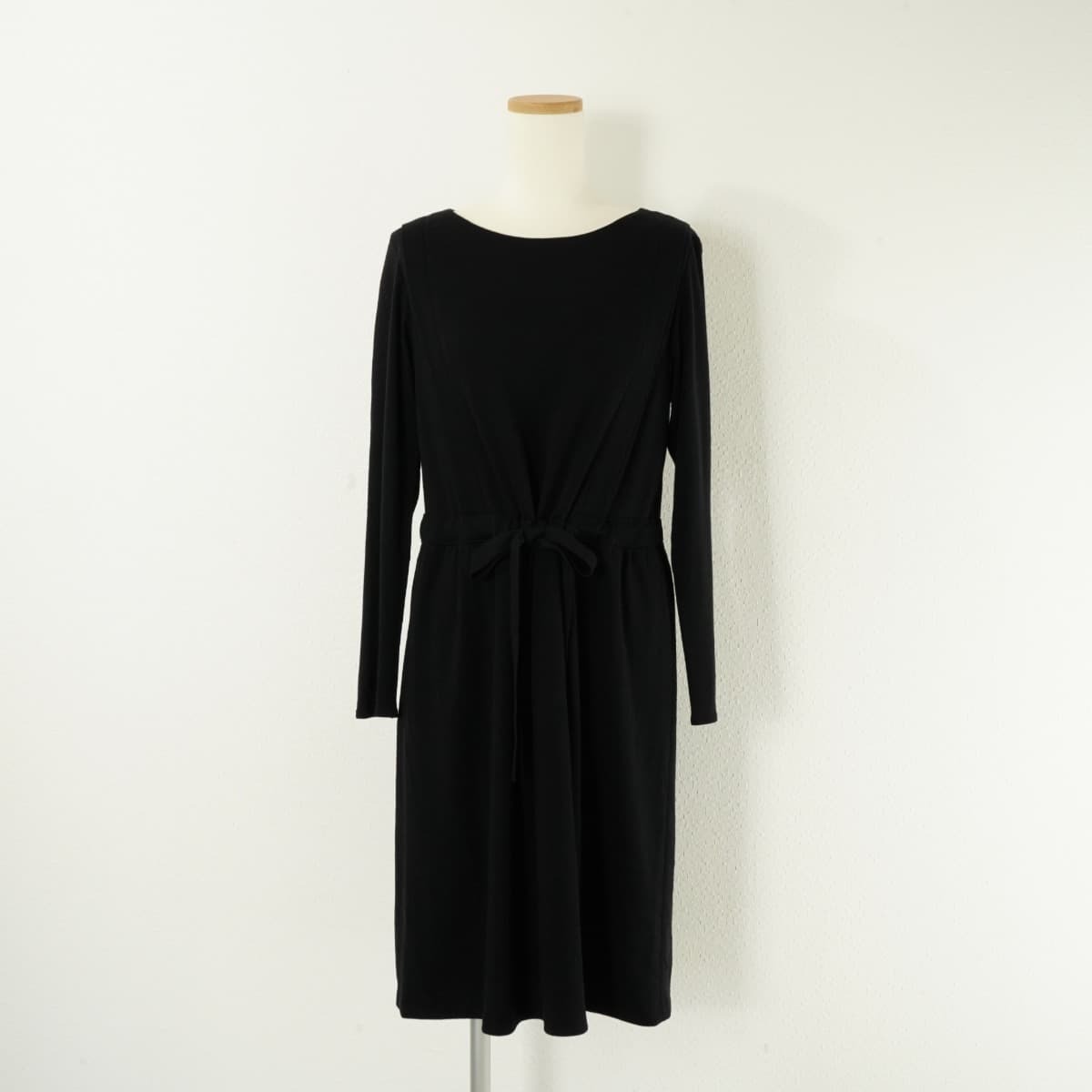 商品名:自由区 ジユウク ウール ワンピース 長袖 ひざ下丈 ウエストリボン ブラック 黒 40